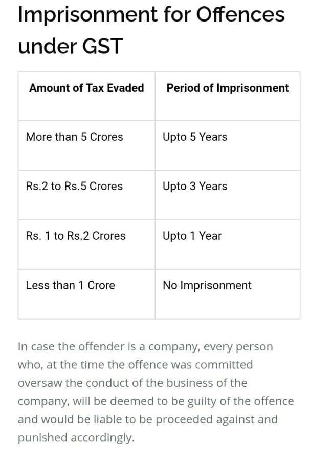 Imprisonment of offences under Gst